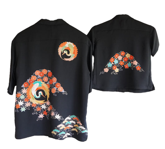 【親子アロハ】黒留袖リメイクアロハシャツ 紋入り