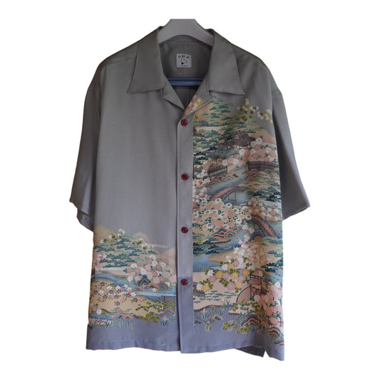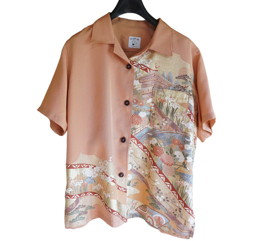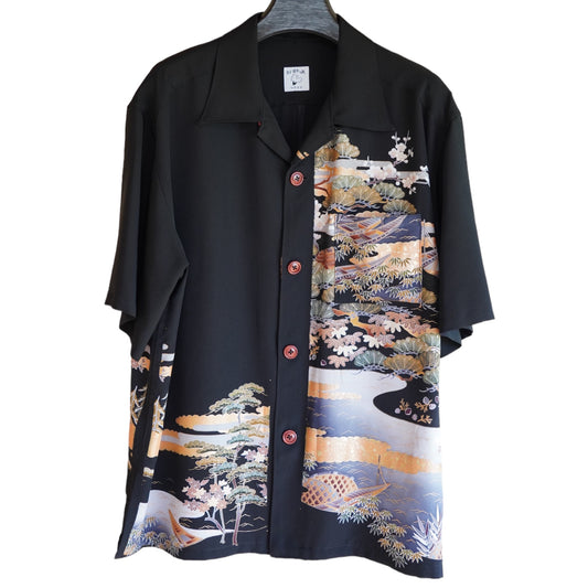 【親子アロハ】金閣寺が描かれた色留袖リメイクアロハシャツ