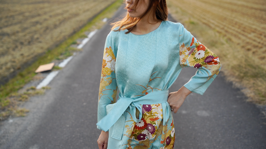 Sold out【昭和時代の着物(推定50年〜60年前】訪問着リメイクAラインワンピース